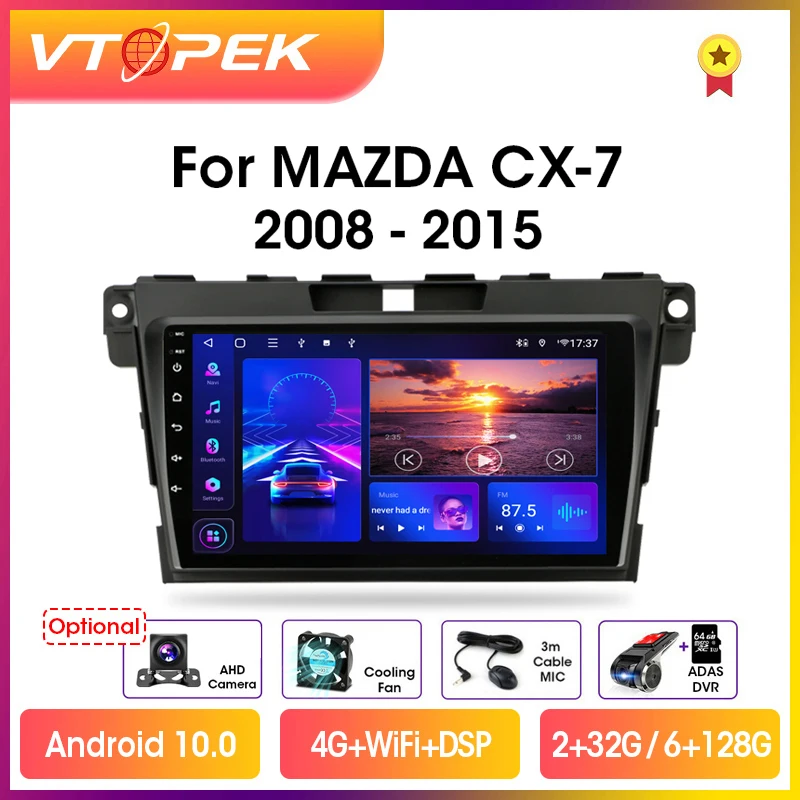 Автомобильная Мультимедийная система Vtopek, стерео-система на Android, с 9 "GPS, видеоплеером, для Mazda CX7, 2008-2015, типоразмер 2DIN