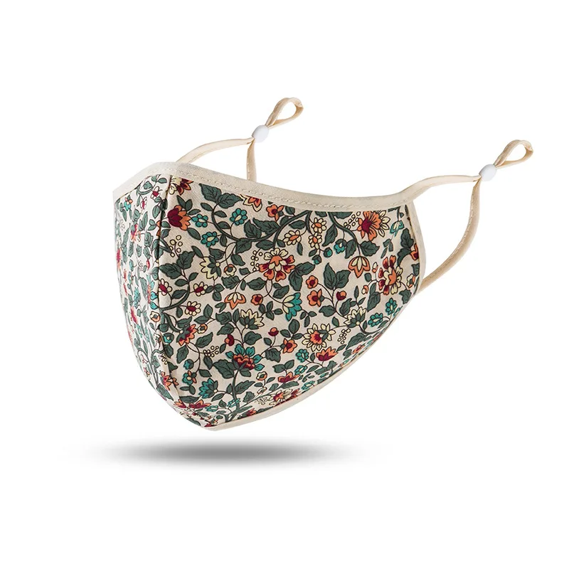Элегантная маска для рта, маска из хлопчатобумажной ткани с цветочным принтом, противопылевая маска для лица с цветочным узором, многоразовая дышащая маска для рта