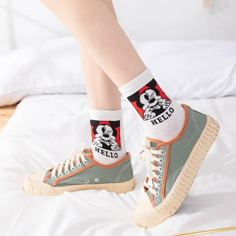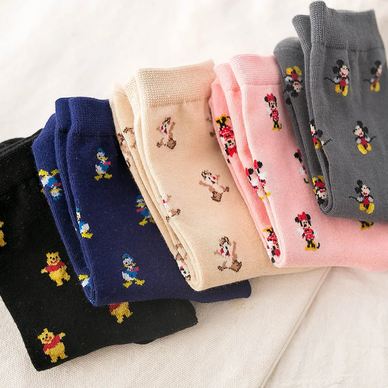 1 пара, женские хлопковые носки с рисунком МиккиМиннипуха