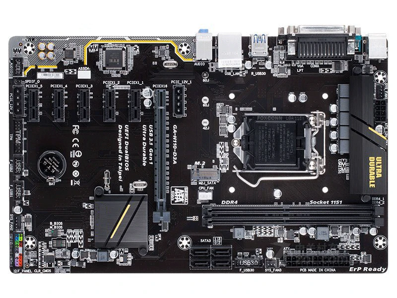 Материнская плата для майнинга, бу, оригинальная материнская плата H110-D3A LGA 1151, DDR4 GA-H110-D3A, 32 ГБ, десктопный ПК, 6PCIE