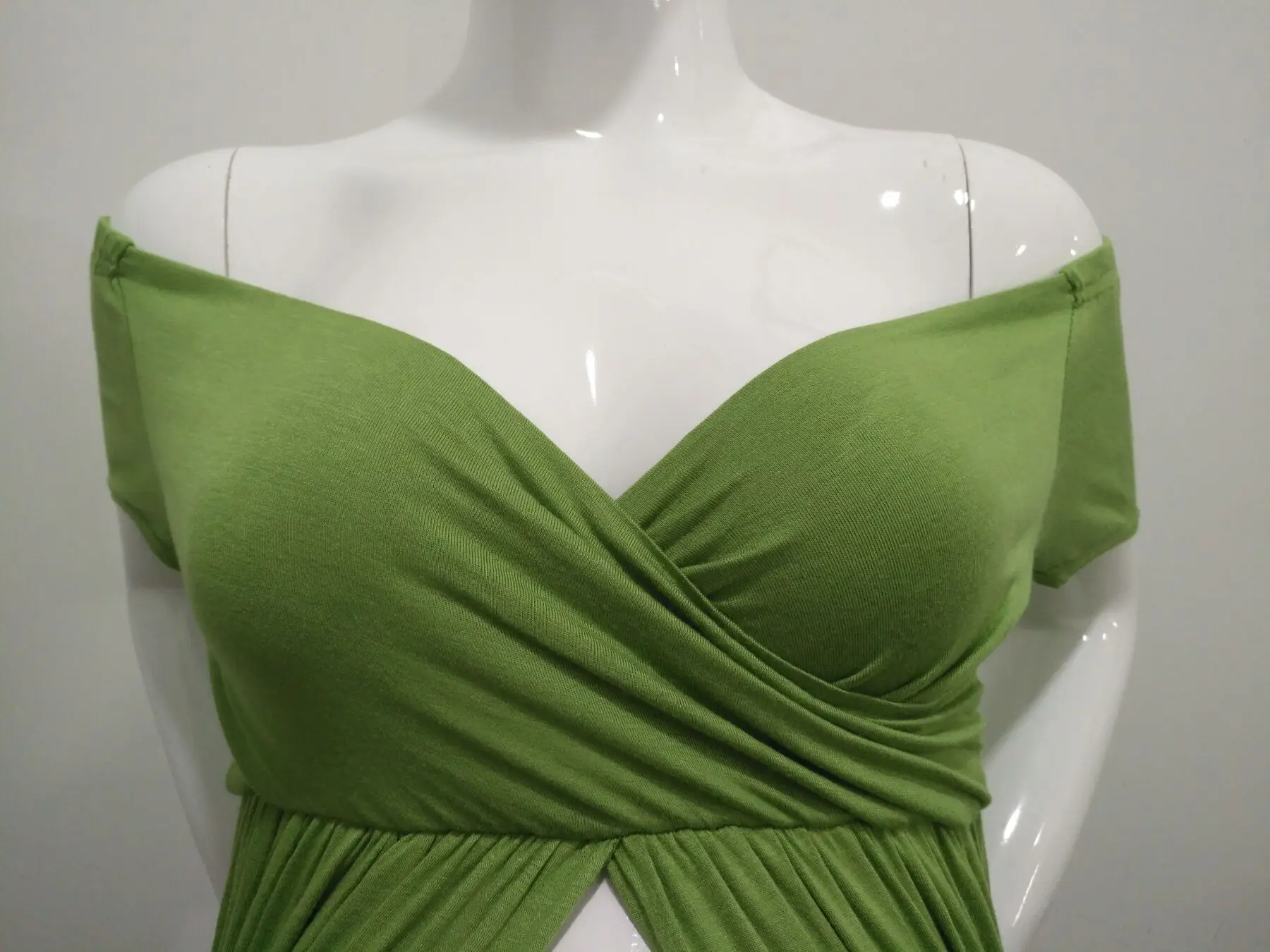 Платье-макси с V-образным вырезом, коротким рукавом и разрезом спереди