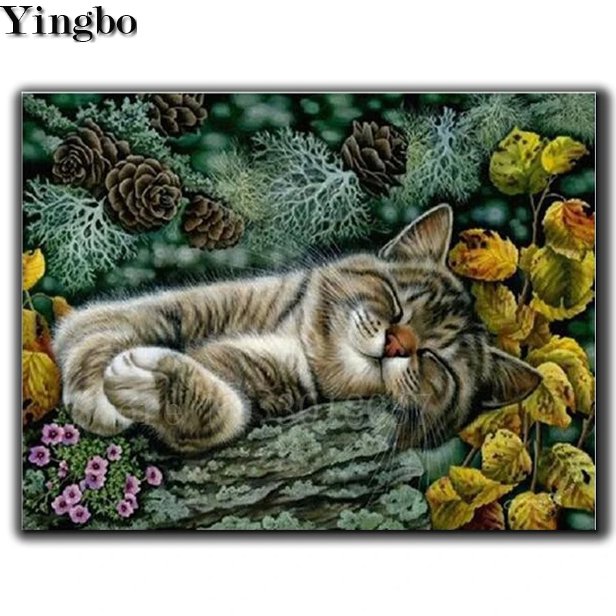 Diy 5d алмазная живопись кот цветок полный квадрат дрель Алмазная вышивка крестиком Мозаика Гостиная Фреска Декор искусства