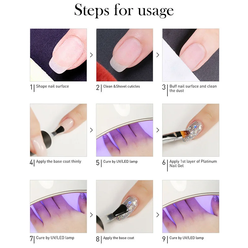 ОписаниеНазвание: Гель-лак для ногтейЦвет: 8 цветовОбъем: 5 млИзлеченный: Светодиодный УФ-светильник Характеристика:Долговечный и сияющий.Легко наносится и впитывается.Быстрая Сушка с помощью любых УФ/светодиодных ламп.Подходит для профессионального или домашнего использования. Использование:1. Формируйте ноготь и забивайте поверхность ногтевой пластины.2. Подготовьте ногти с помощью базового покрытия и высушите его под ультрафиолетовая/Светодиодная лампа.3. Нанесите Платиновый гель для ногтей, закрепите его под УФ лампой или светодиодный лампой. (Можно повторить этот шаг, пока вы не будете удовлетворены эффектом.)4. Нанесите верхнее пальто и высушите его под ультрафиолетовая/Светодиодная лампа. Как удалить:1. Замочите ногти в акриловом удалителе около 5 минут.2. Аккуратно разорвите весь кусок эмали для ногтей на каждый ноготь. Примечание: Из-за разницы между различными мониторами изображение может не отражать фактический цвет изделия. Мы гарантируем, что модель реального изделия не отличается от представленной на фото. Спасибо! Пожалуйста, оставьте сообщение, прежде чем дать плохие отзывы, если у товара есть какие-то проблемы. Спасибо за понимание.