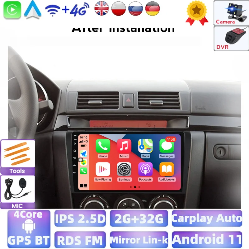 Автомагнитола Mazda3 с GPS-навигацией, автомобильный мультимедийный видеорегистратор на платформе Android, 2 Гб ОЗУ, 32 Гб ПЗУ, экран 1024*600, с экраном 9 дюймов, Wi-Fi, для Mazda 3 Bk, типоразмер 2DIN, 2004-2013