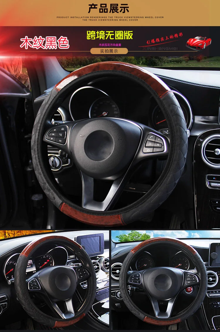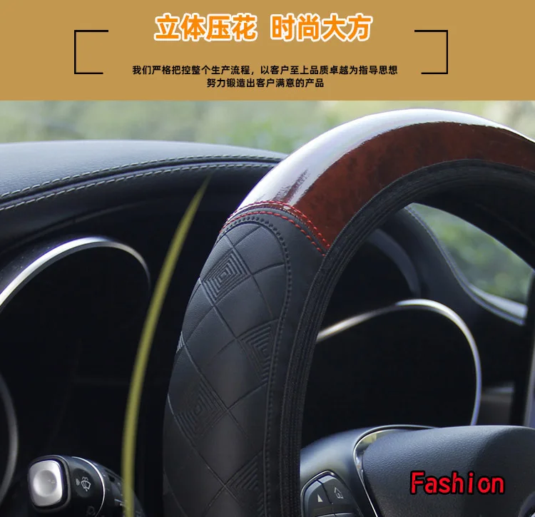 QFHETJIE 1 шт. Новый Стиль чехол рулевого колеса автомобиля персиковое дерево кожа тиснение не внутреннее кольцо Эластичная лента сцепление крышка