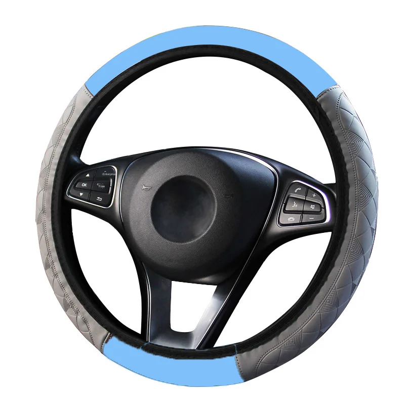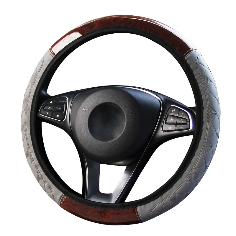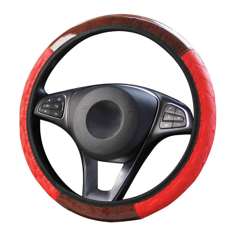 QFHETJIE, 1 шт., новый стиль чехол рулевого колеса автомобиля, персиковое дерево, кожа, тиснение, не внутреннее кольцо, эластичная лента, чехол