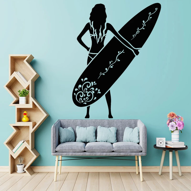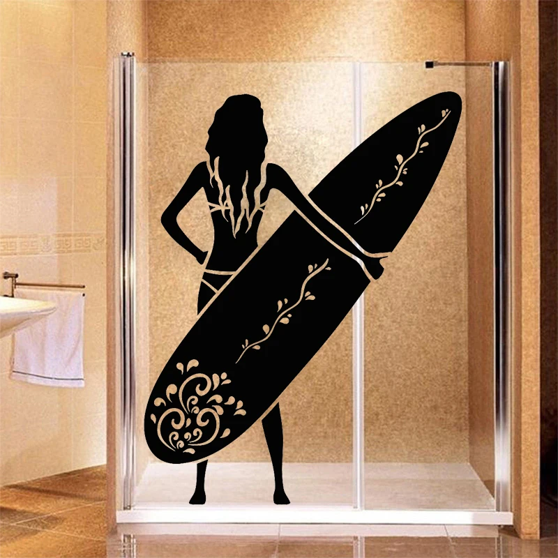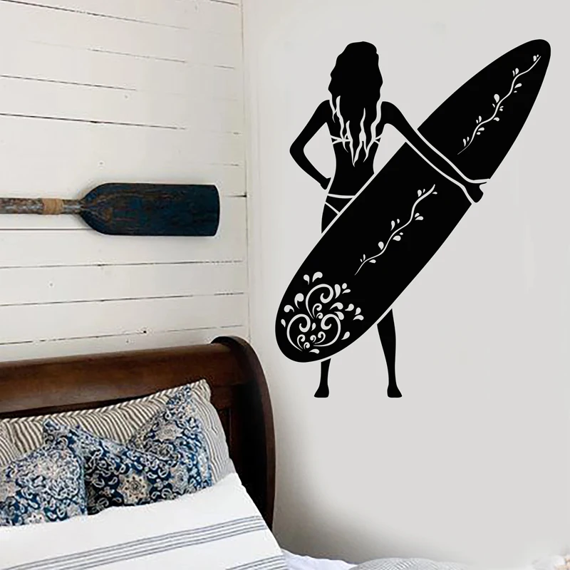 Настенная Наклейка для серфинга, Пляжная переводная картинка, водные виды спорта, наклейки для серфинга и девушек, наклейки для серфинга, декор для ванной комнаты, украшение для комнаты для девочек