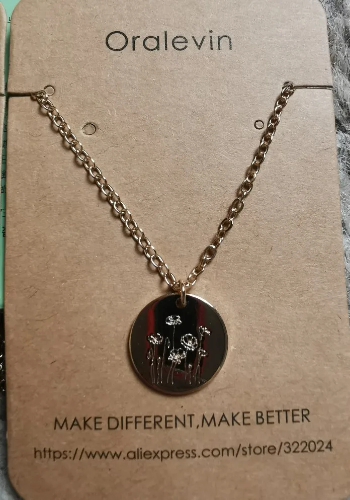 Заказ отправляли долго. Вероятно, цветы делают на монетках под заказ. Пришли в Израиль через месяц после отправки. Выглядит очень мило. Цепочка достаточно длинная, к тому же есть удлинитель. Есть сомнения в том, что это серебро, т.к. проб нет ни на монетке, ни на цепочке. В целом пока что я довольна, посмотрю, как будет носиться, и, если не забуду, дополню отзыв. А, еще просила продавца нацепить жемчужинки на цепочку, как на некоторых других украшениях. Ответил, что сделает, но, увы, как видите))) Наверное, забыли. Жаль.
