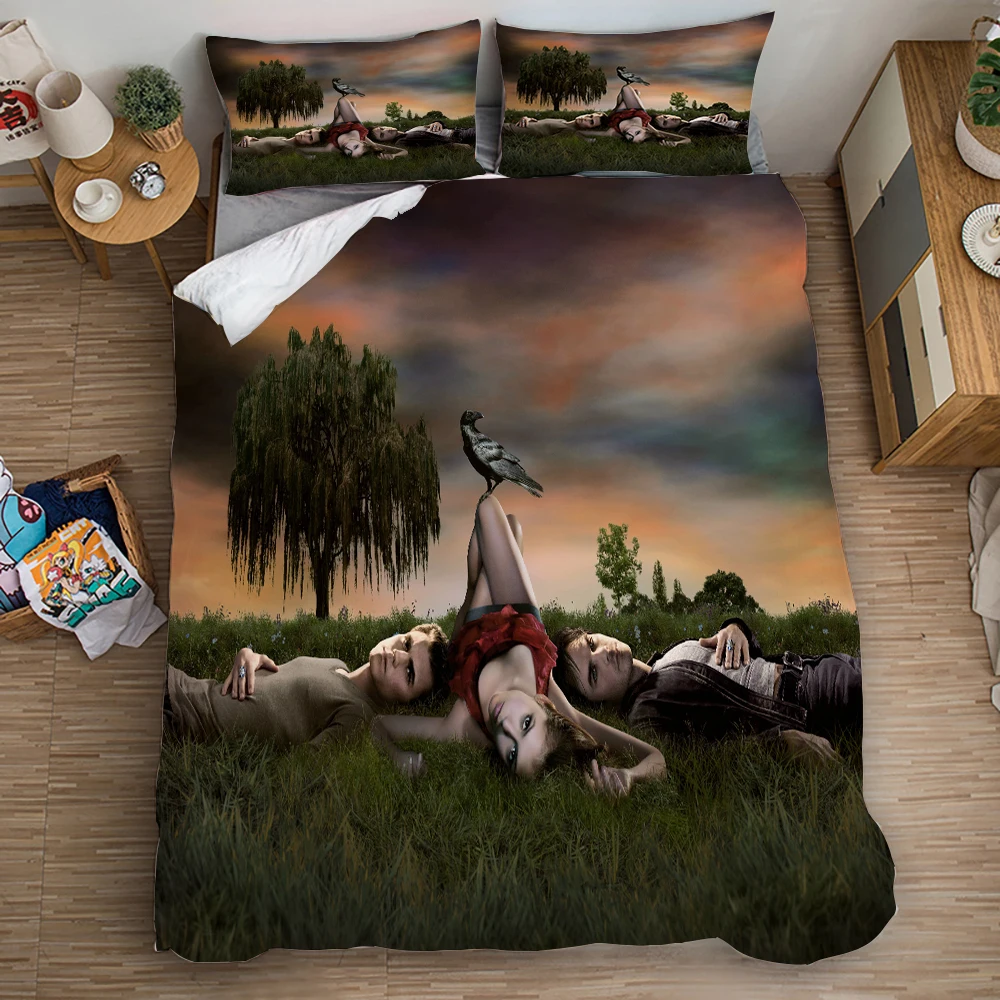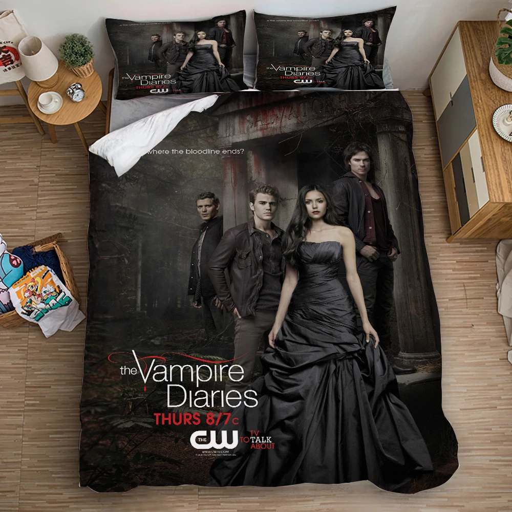Комплект постельного белья с 3D-принтом Дневники вампира, пододеяльник, мультяшное Гигантское Одеяло, постельное белье, без простыни