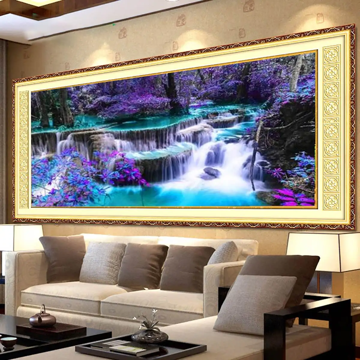 Алмазная живопись 5D "сделай сам", живописный водопад круглая вышивка стразы, пейзаж, вышивка крестиком, мозаика, украшение для дома