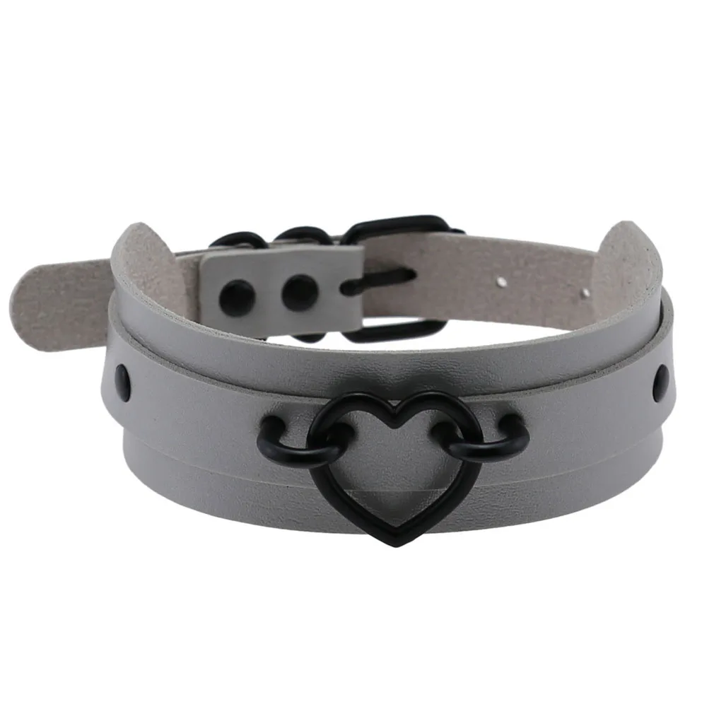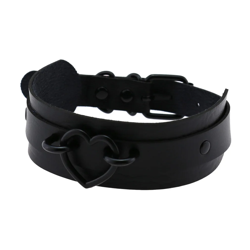Женский кожаный ошейник Goth Black Heart, черный металлический чокер в стиле панк, ожерелье в стиле рок, аксессуар для косплея, эффектное ожерелье в стиле эмо, 2019
