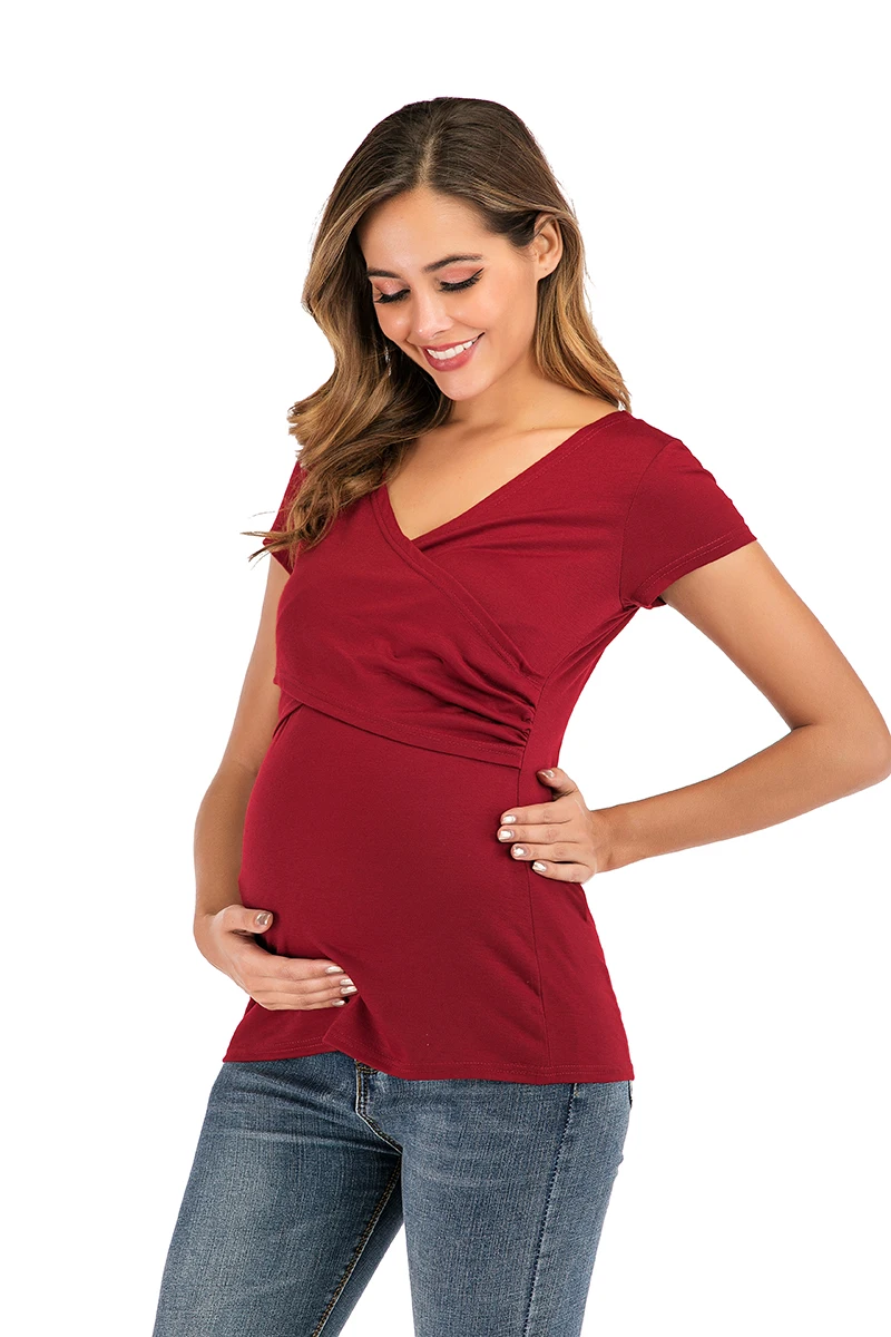 Топы для беременных женщин удобная туника с коротким рукавом Топ для кормления грудью Футболка для беременных женщин Одежда для мам