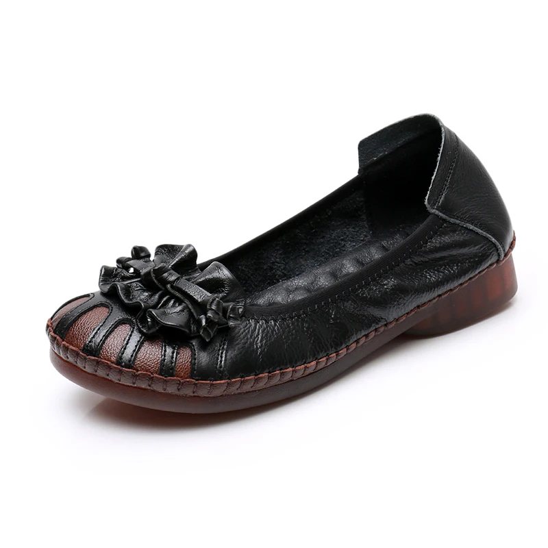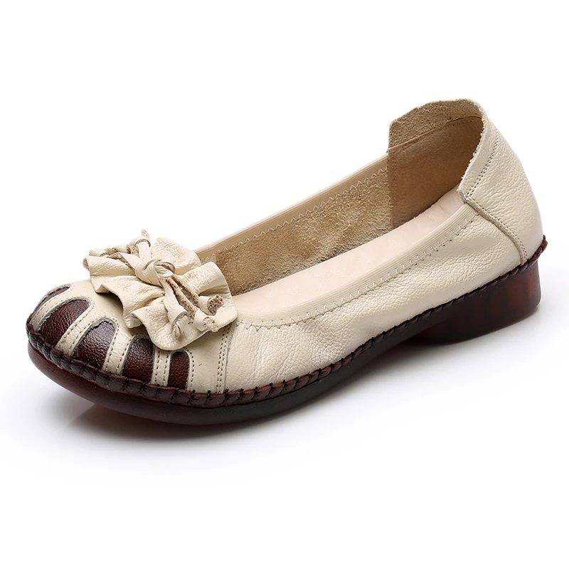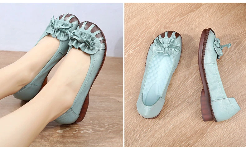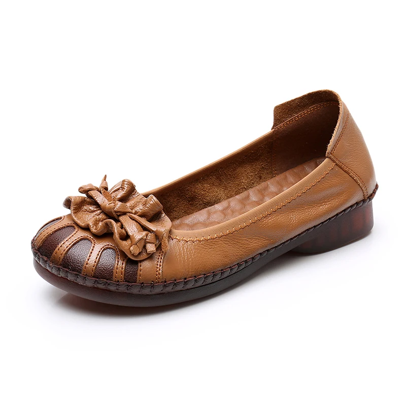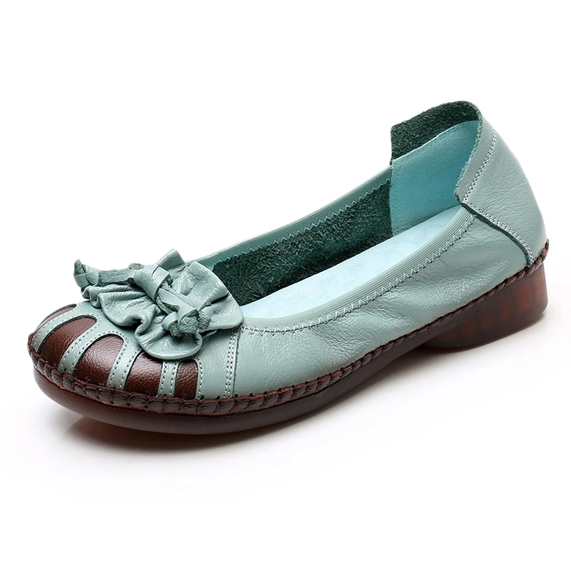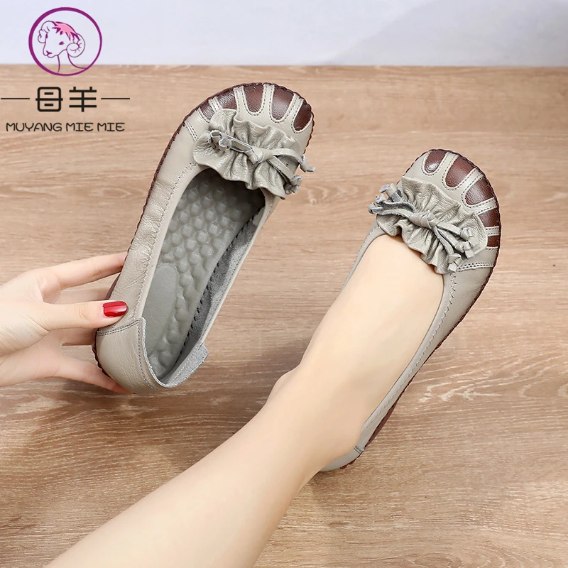 Женские туфли из мягкой кожи MUYANG, весенне-осенние туфли на плоской подошве, с цветами, удобные, ручная работа, 2021