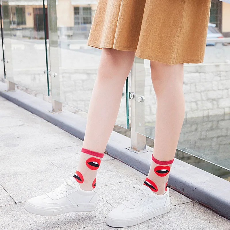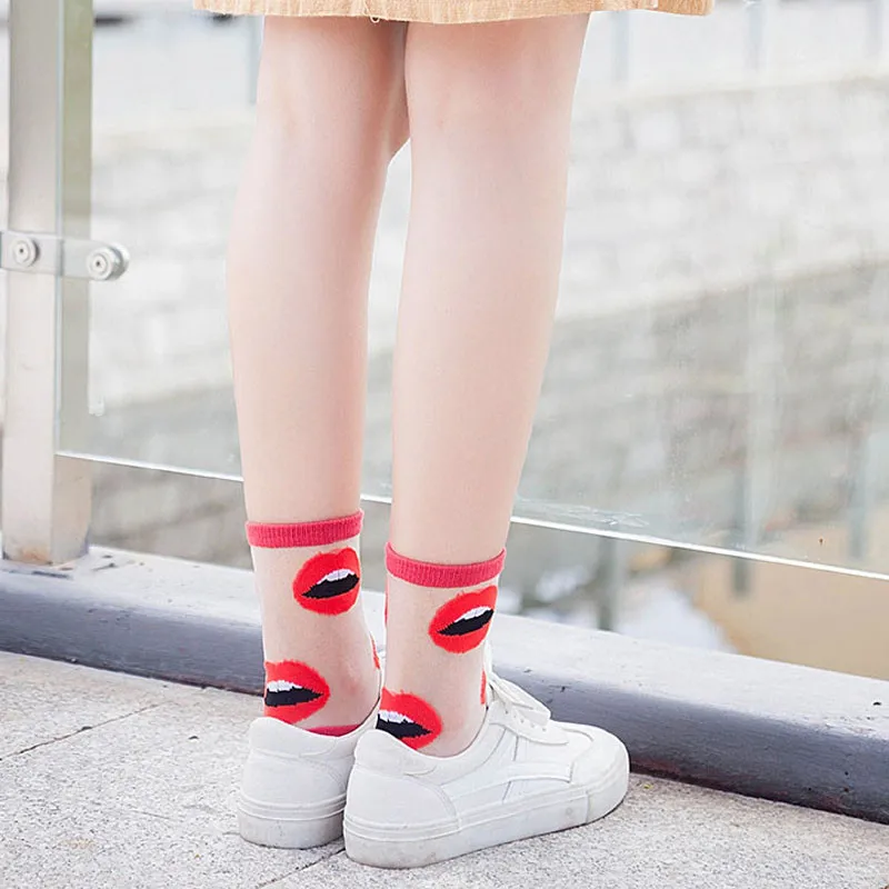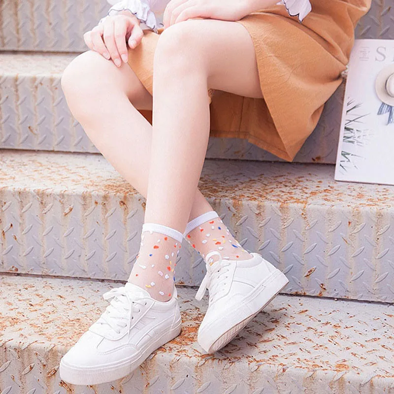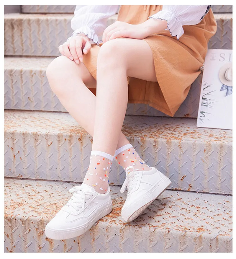 Женские носки, ультратонкие прозрачные кружевные эластичные летние носки до щиколотки, сетчатые, стеклянные, модные, прозрачные