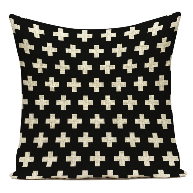 Черный, белый цвет Декоративные диванные подушки Чехол с геометриче...