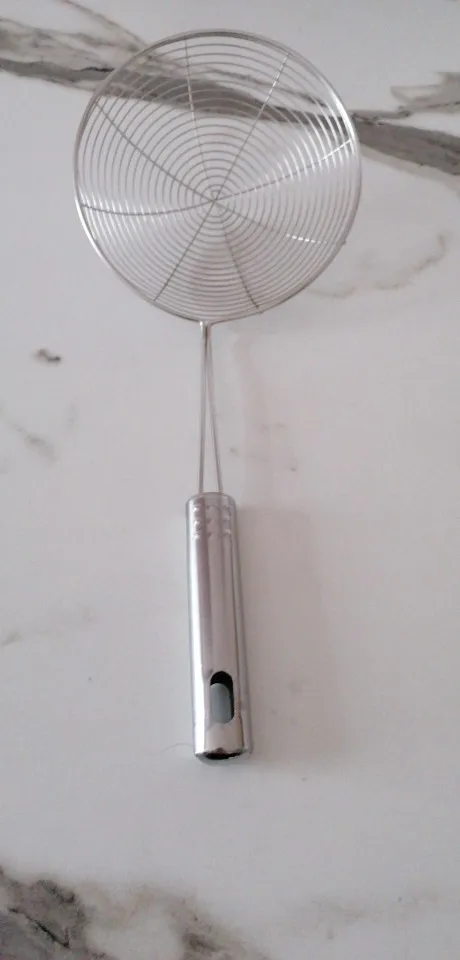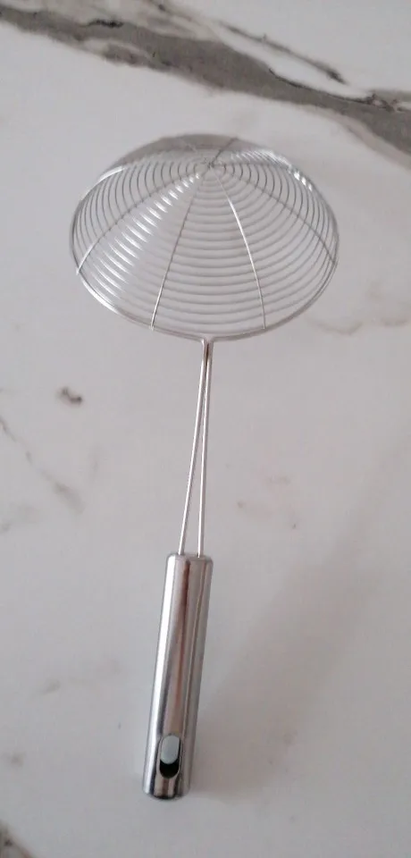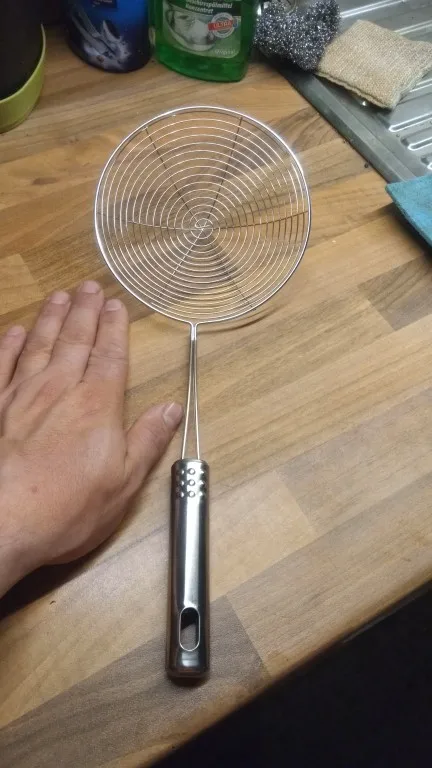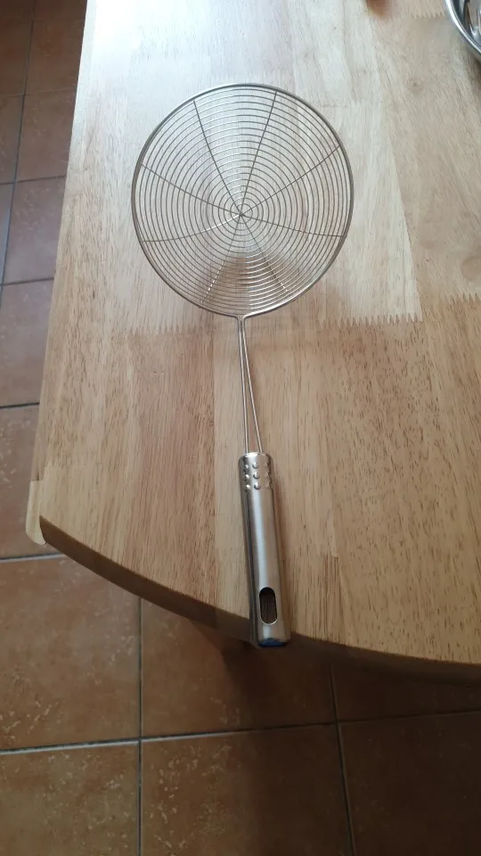 Great strainer. Perfect for the tempura frying pot I have. It got a little bent during shipping but is still very usable and durable. I'm very happy with the purchase.
