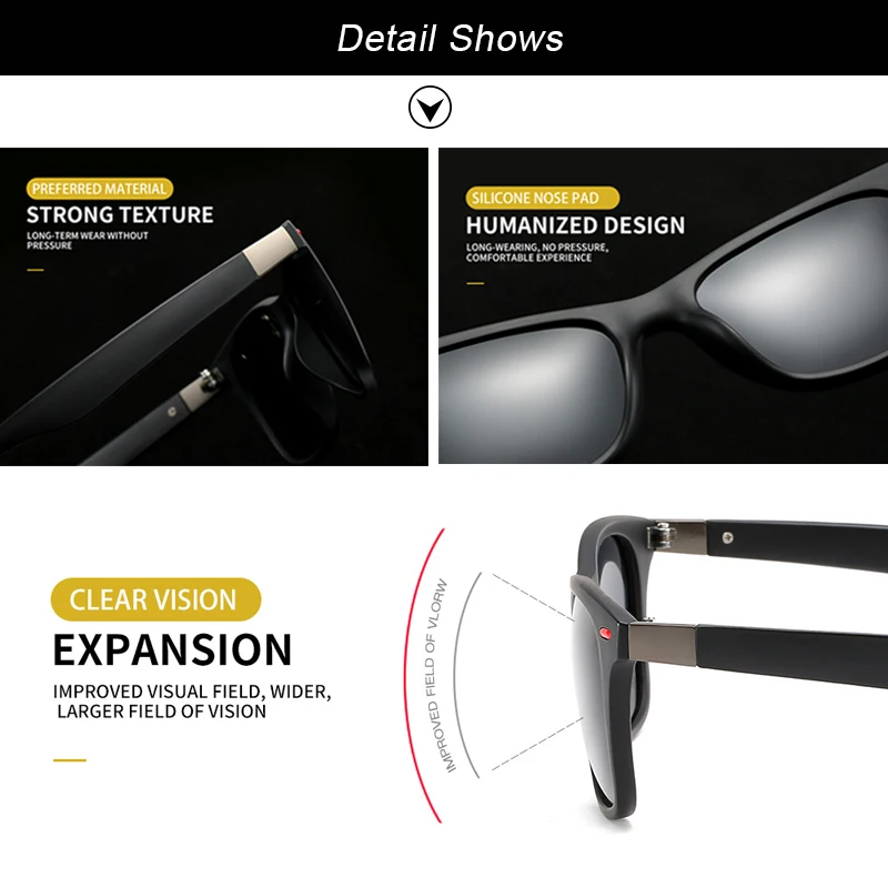 Солнцезащитные очки Мужские поляризационные, классические брендовые дизайнерские квадратные пластиковые солнечные очки для вождения, UV400