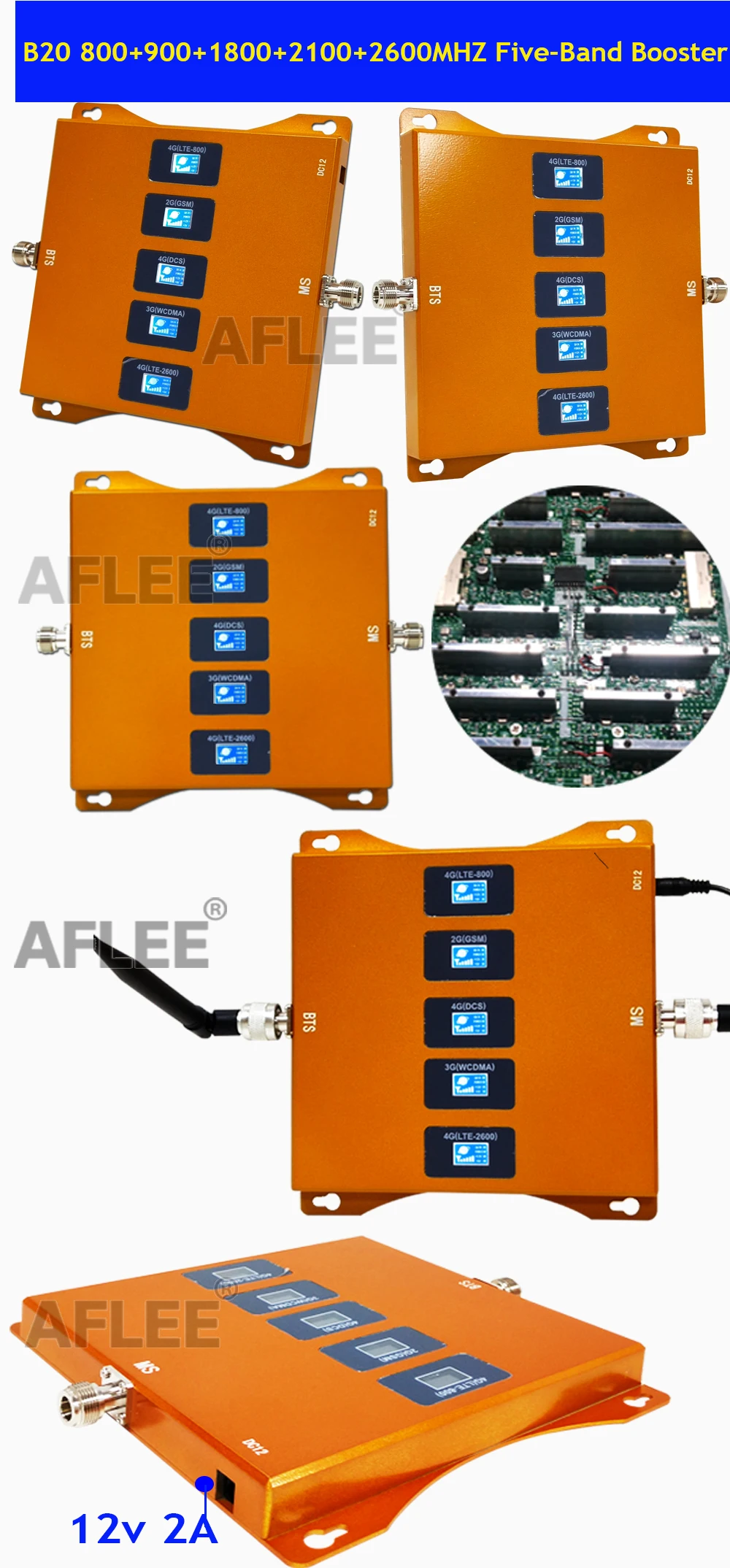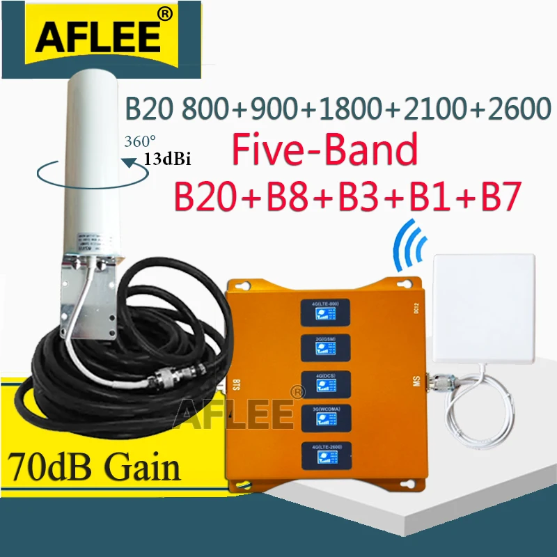Band20)800mhz + Band8)900mhz + Band3)1800mhz + Band1)2100mhz + Band7)2600mhz сотовый усилитель Точка продажи!