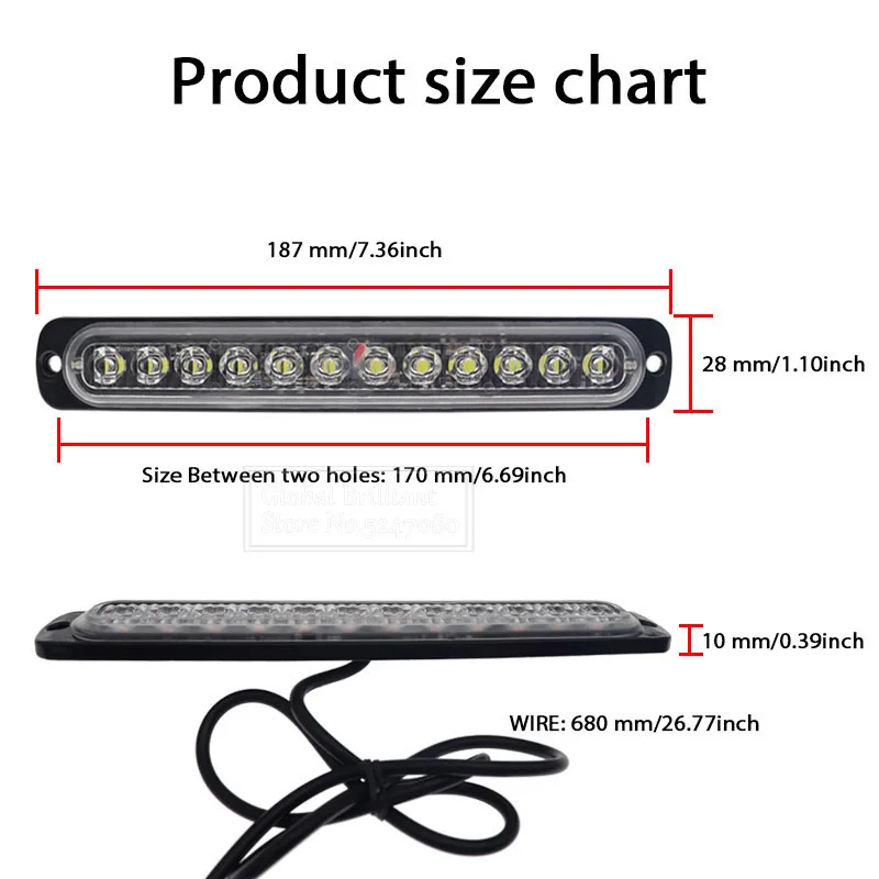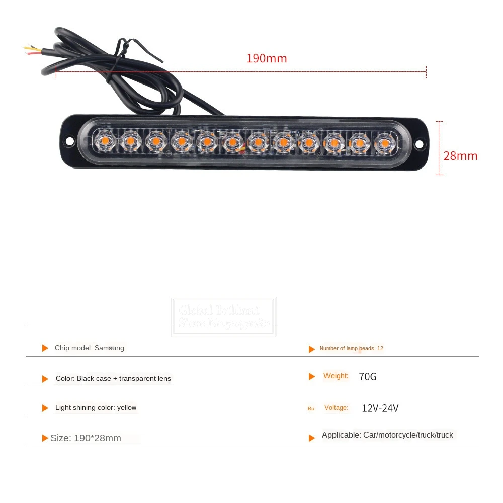 Ультратонкий аварийный стробоскоп с 12 светодиодами, боковой маркер...