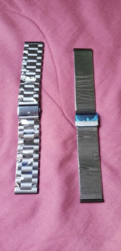 Отличные браслеты, лучше силиконовых ремешков. В комплекте есть все для замены ремешков. Легкий вес и несмотря на металл они не холодные.