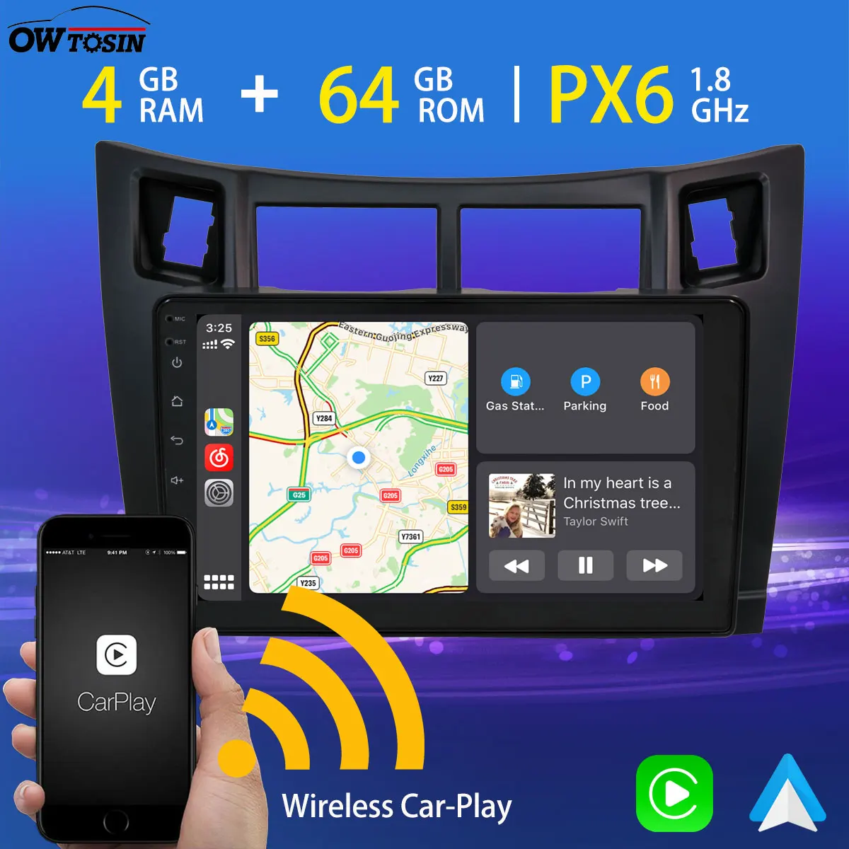 Автомобильный мультимедийный плеер 9 "PX6 4 + 64 ГБ Android 10 GPS-навигация Радио для Toyota Yaris 2005-2011 Carplay TDA7850 5 * USB автостерео