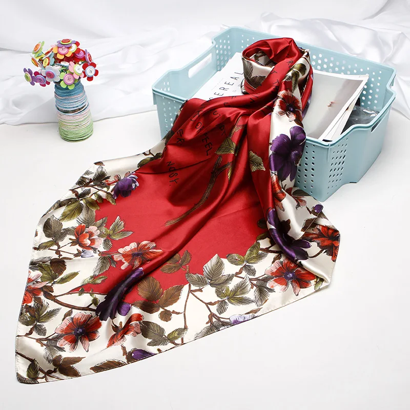 Шарф женский квадратный с поясом 90 см, гладкий шелковый шарф с цветочным принтом в стиле ретро, весна-лето 2020