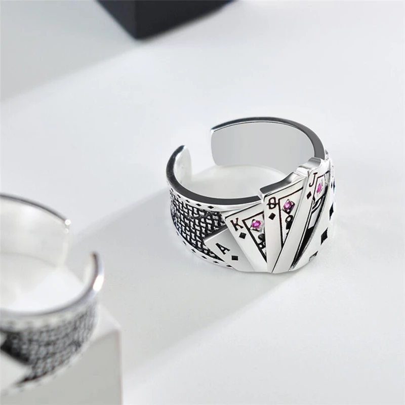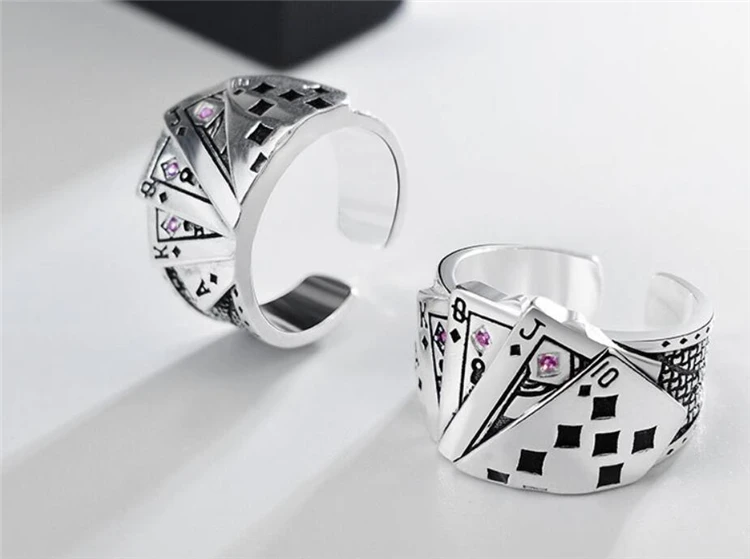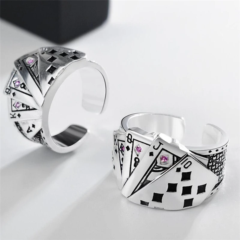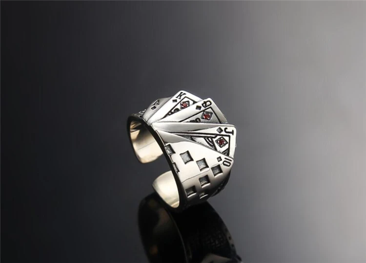 Уникальное запоминающее кольцо в ретро стиле, классное женское Открытое кольцо с изменяемым размером в виде женского покера, SRI565