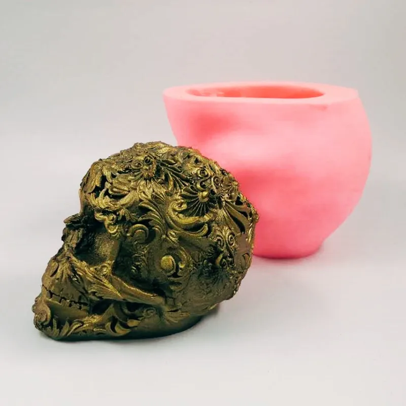 3D трехмерный рельеф цветок череп силиконовая форма для изготовления свечи Смола форма для шоколадного торта украшение пищевая форма
