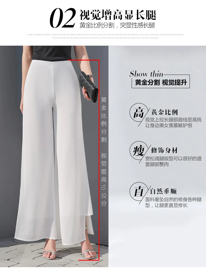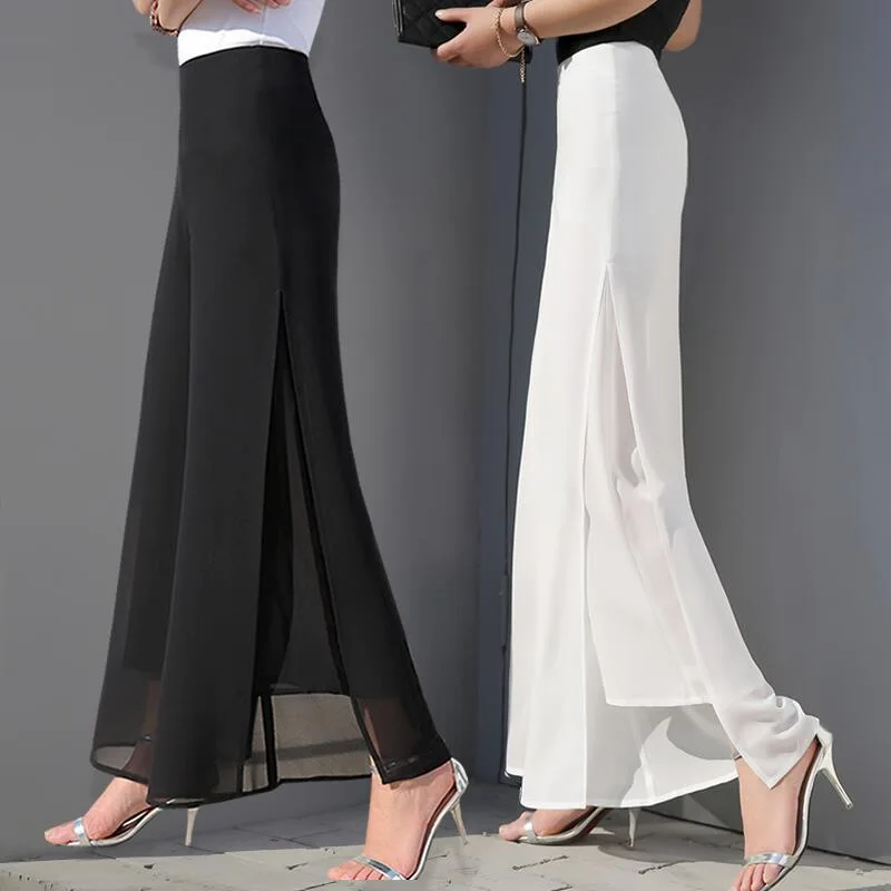 2022 шифоновые брюки-кюлоты с завышенной талией, юбка L, свободные прямые повседневные брюки Shuai Ku из газовой ткани, женские брюки с широкими штанинами и разрезом