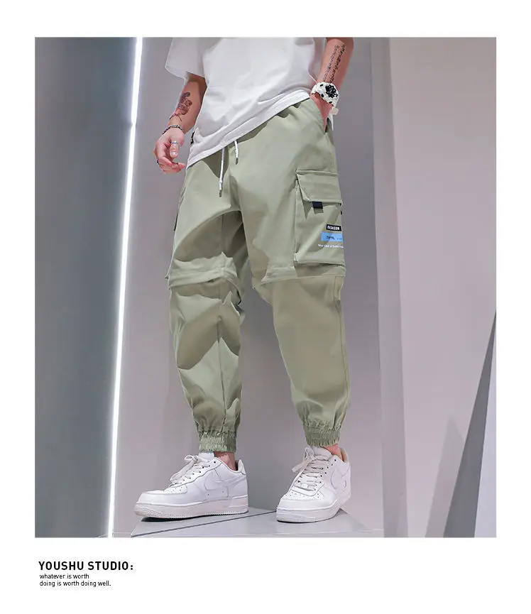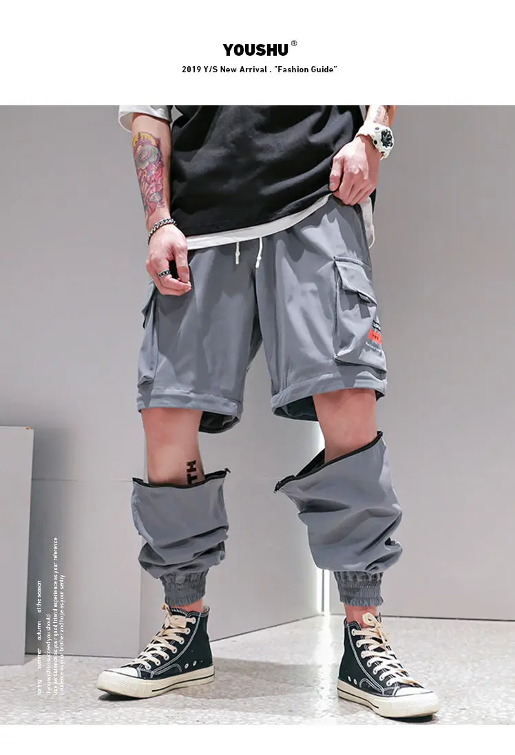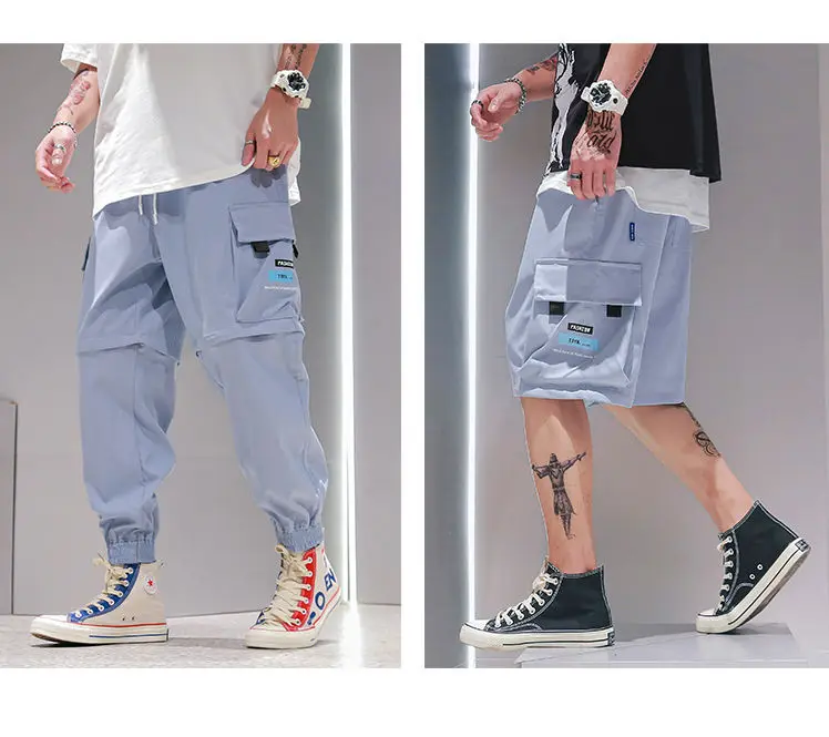 Брюки-карго Мужские Съемные, легкие модные штаны до щиколотки, тонкие корейские свободные повседневные шорты, 4XL, лето
