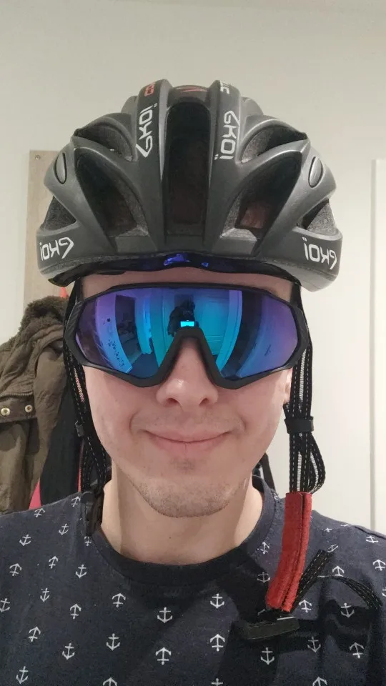 Хорошее качество и цена. У меня была авария на велосипеде и поцарапала их. Это второй товар, который я покупаю. Совет: очки «ноги» всегда находятся вне ремешка для шлема.