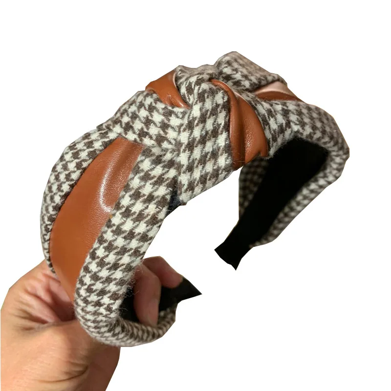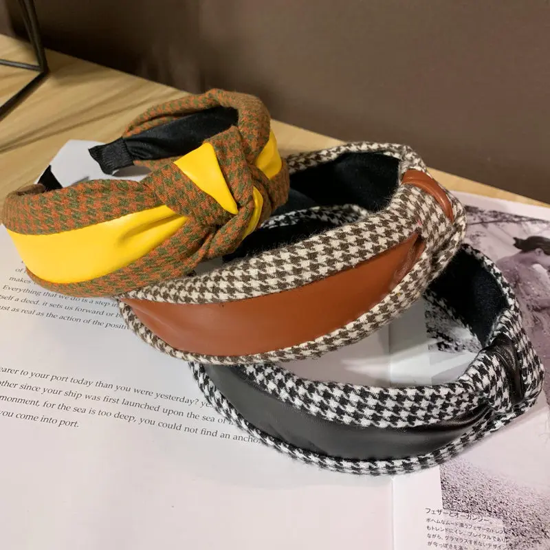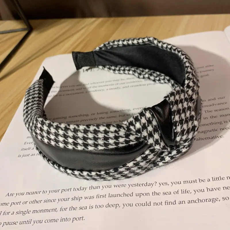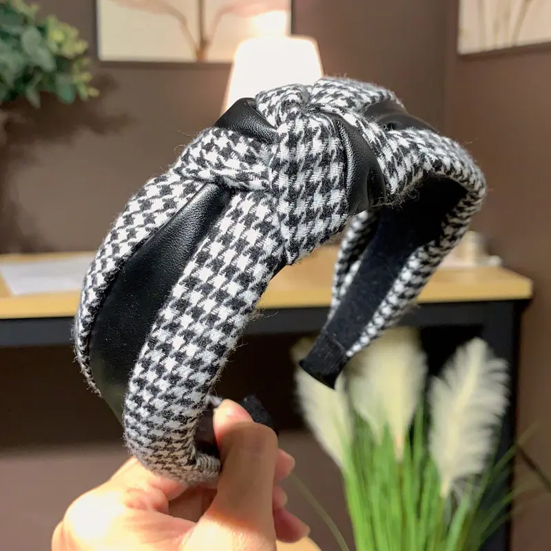 Новая повязка на голову в клетку в стиле хидори, аксессуары для волос из искусственной кожи и ткани, повязка для волос с широким покрытием, украшения для волос для женщин