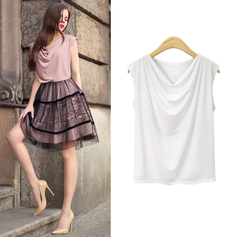 Женский топ без рукавов, облегающий топ с вырезом, белая уличная од...