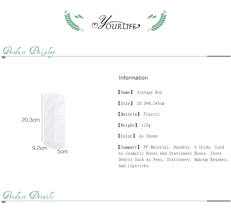 Особенность: 100% новый товар высокого качества. Изготовлен из полипропилена, экологически безопасен, прочный и долговечный. Неядовитый, безвкусный, водонепроницаемый, влагостойкий, легко моется. Подходит для косметики, украшений, продуктов, канцелярских принадлежностей, визиток и т. д. Сфера применения: кабинет, ванная комната, спальня, гостиная. Характеристики Товара: Размер: 20,3*9,2*5 см Материал: ПП Вес: 115 г -Примечание: 1. Размер измеряется вручную, возможна погрешность в 0-1 см, это нормально. 2. В связи с разной конфигурацией разных мониторов изображение не отображает фактический цвет товара. Если у вас есть какие-либо другие пожелания, пожалуйста, оставьте нам сообщение, чтобы мы постарались помочь вам.