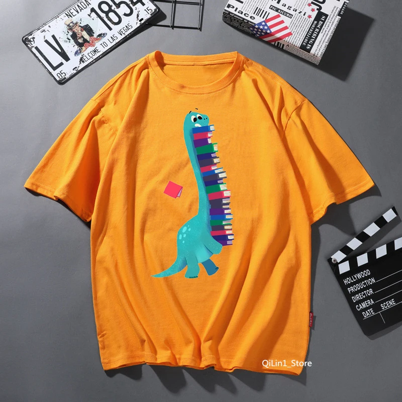 Футболка женскаяМужская однотонная с забавным принтом в виде диноза...