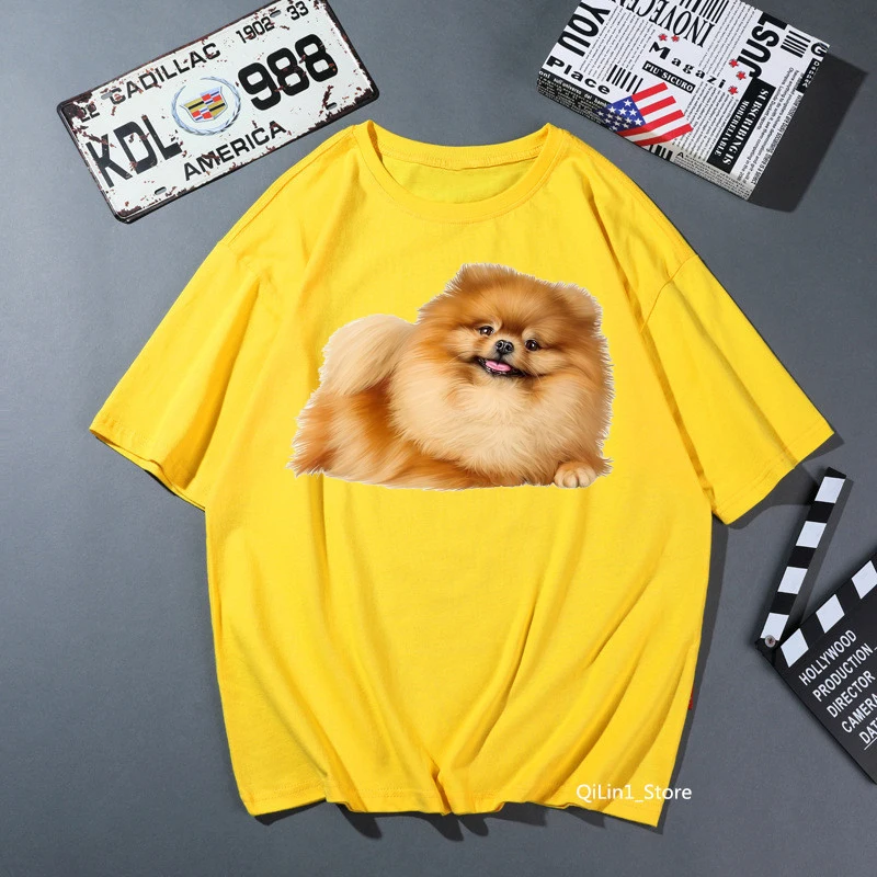 Футболка женская с принтом животных, милая рубашка с изображением коричневого померанского животного, подарок для любимых и друзей, унисекс, летний топ