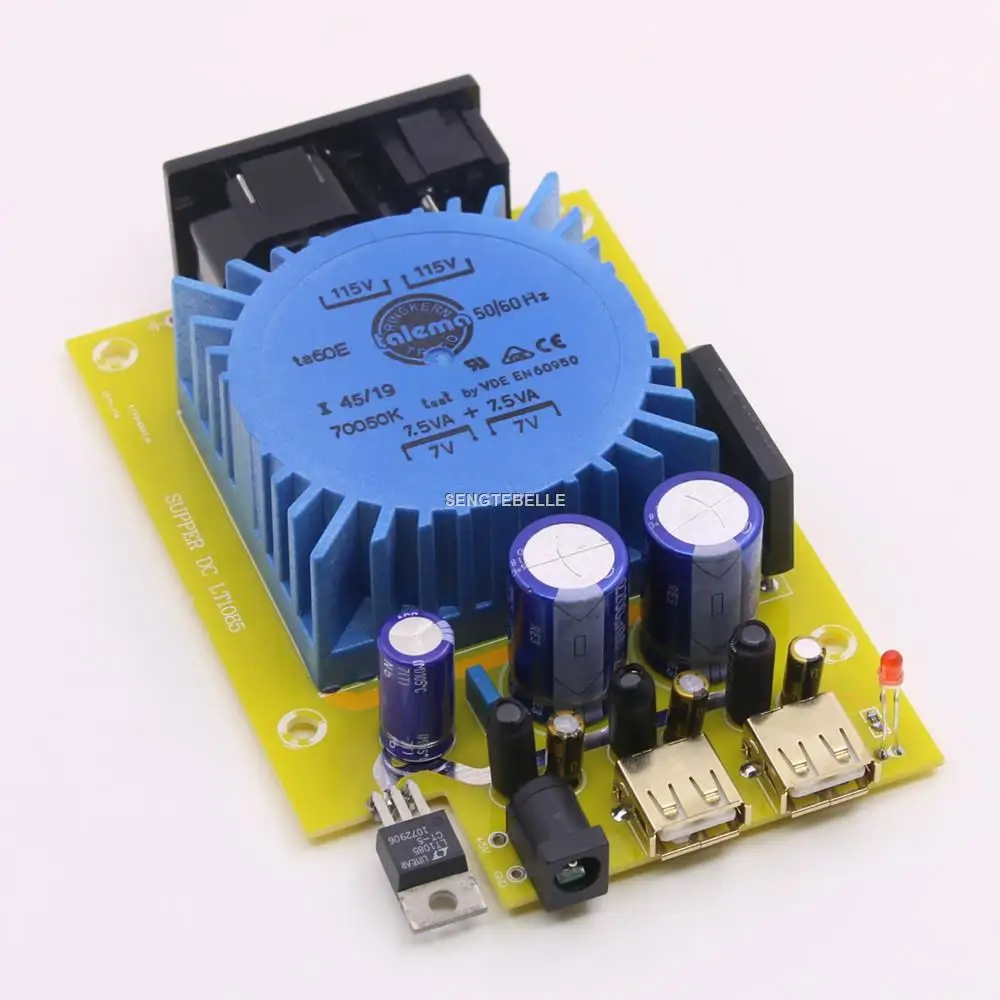 Готовый Линейный источник питания с LT1085 core + Двухступенчатая фильтрация CLC Рабочее напряжение: 115 В переменного тока или 230 В переменного тока опционально Выходное напряжение: 5 В постоянного тока (макс. 1,5 А) Используется герметичный Hi-Fi трансформатор Bingzi /Talema 15VA. Двойной выход USB gold-разъем с покрытием Чип регулятора низкого отключения LT1085 (оригинальный sprinter) Переключатель производство Тайвань со встроенным гнездом питания Интегрированная печатная плата, без внутреннего подключения Припой, содержащий серебро, полностью ручная сварка Электролитический конденсатор для лихорадки LXZ Импортный высокий мост Выпрямитель тока