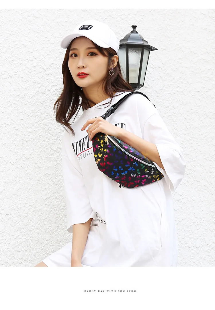 Поясная Сумка-бананка, голографическая сумочка на пояс, мешок для денег, нагрудная поясная сумочка, забавная, лазерная, в стиле хип-хоп