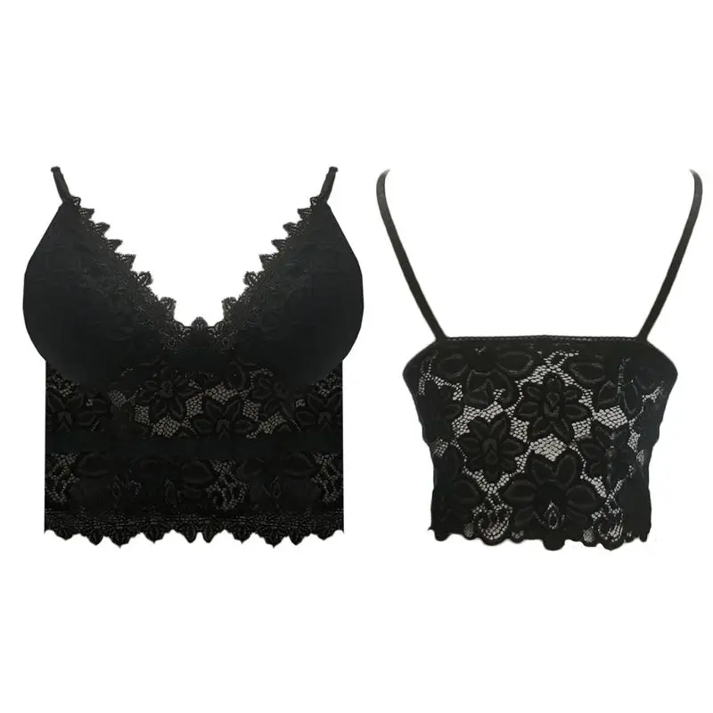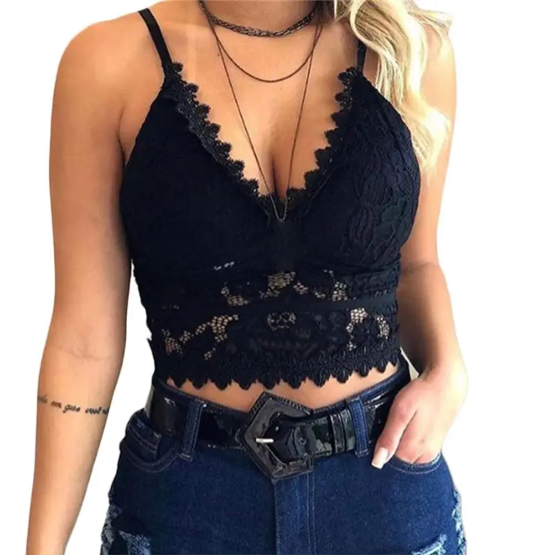Бюстгальтер женский кружевной с V-образным вырезом, пикантный кружевной топ без косточек, на тонких бретелях-спагетти, Клубная одежда, S-3XL