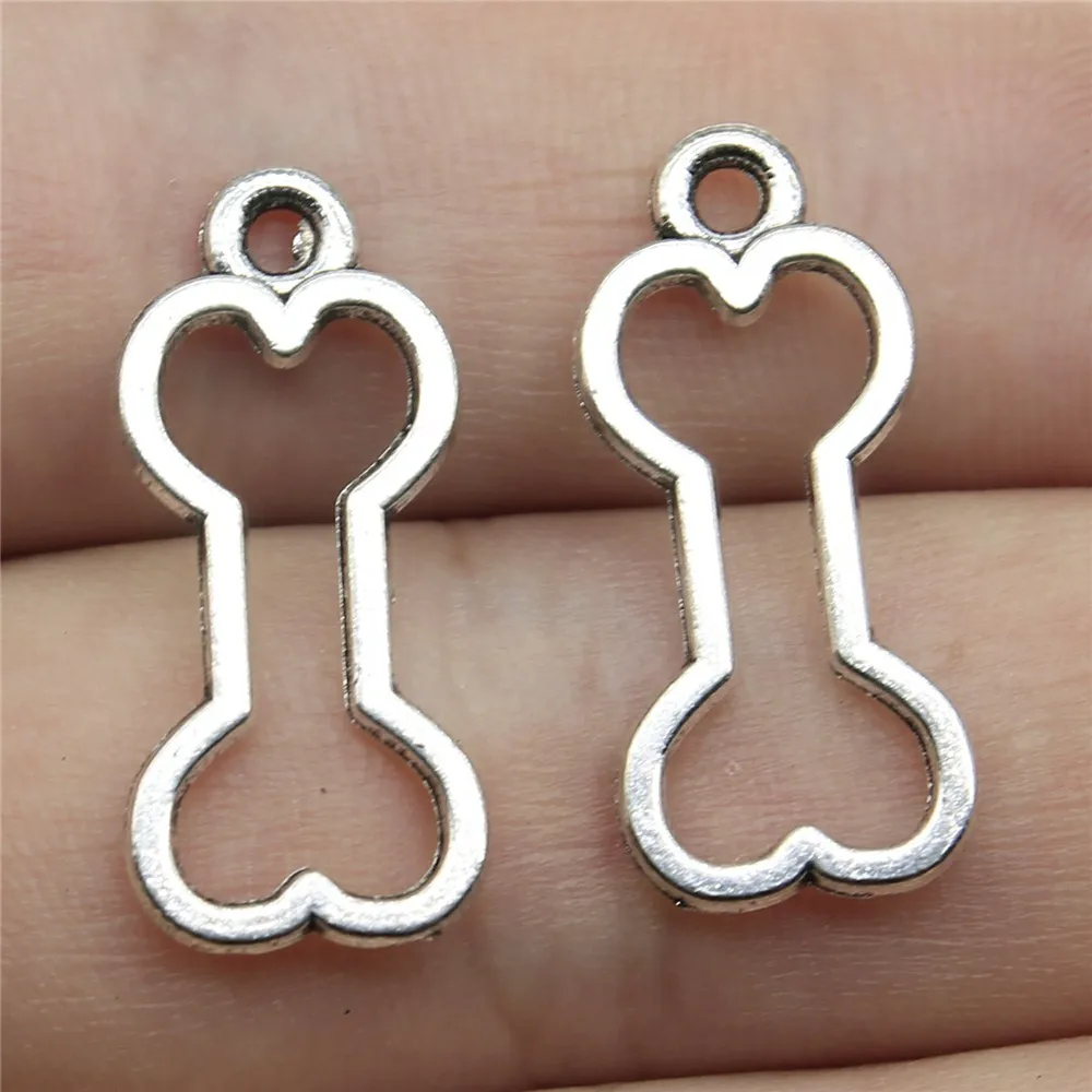 WYSIWYG 20 шт Подвески полые собачьи кости 25x11 мм тибетские бронзовые серебряные подвески антикварные ювелирные изделия Сделай Сам ручной работы