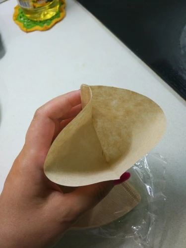 Материал слишком тонкий. Сначала капните. Но он скоро прекратился. Бумажный фильтр становится таким мягким и плотно приклеивается к сливу и закрывает отверстия. Долго ждать его слива. Кофе становится холодным. Иногда он полностью останавливает капель. Он порвется, когда я попробую поднять бумажный фильтр, чтобы выбить остатки кофейного порошка