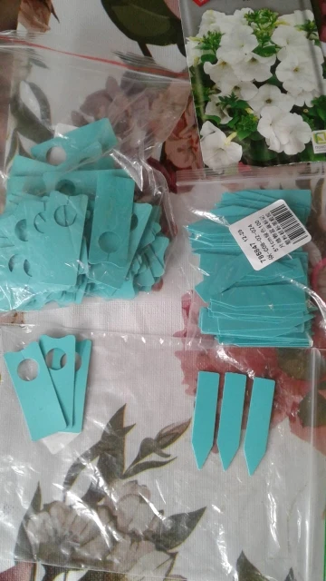 Заказ пришёл быстро. товаром очень довольна, очень удобен. думала будет маленький совсем, но как оказалось больше и не нужно. можно для рассады спокойно использовать. и на взрослых растениях будет отлично! лёгкие. писала карандашом отлично видно, пальцем не сотрёшь, а стёркой в момент! отлично!