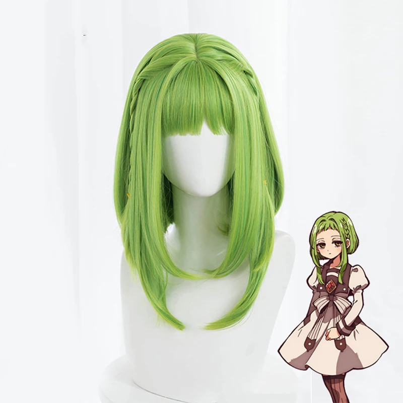 Аниме Nanamine Sakura зеленый парик косплей костюм Jibaku Shounen Toilet-bound Hanako-kun термостойкие синтетические волосы женские парикиВысокое качествоРегулируемый размер подходит для большинства людей