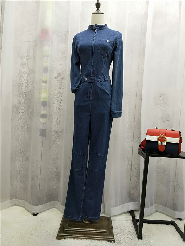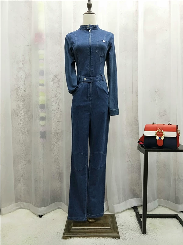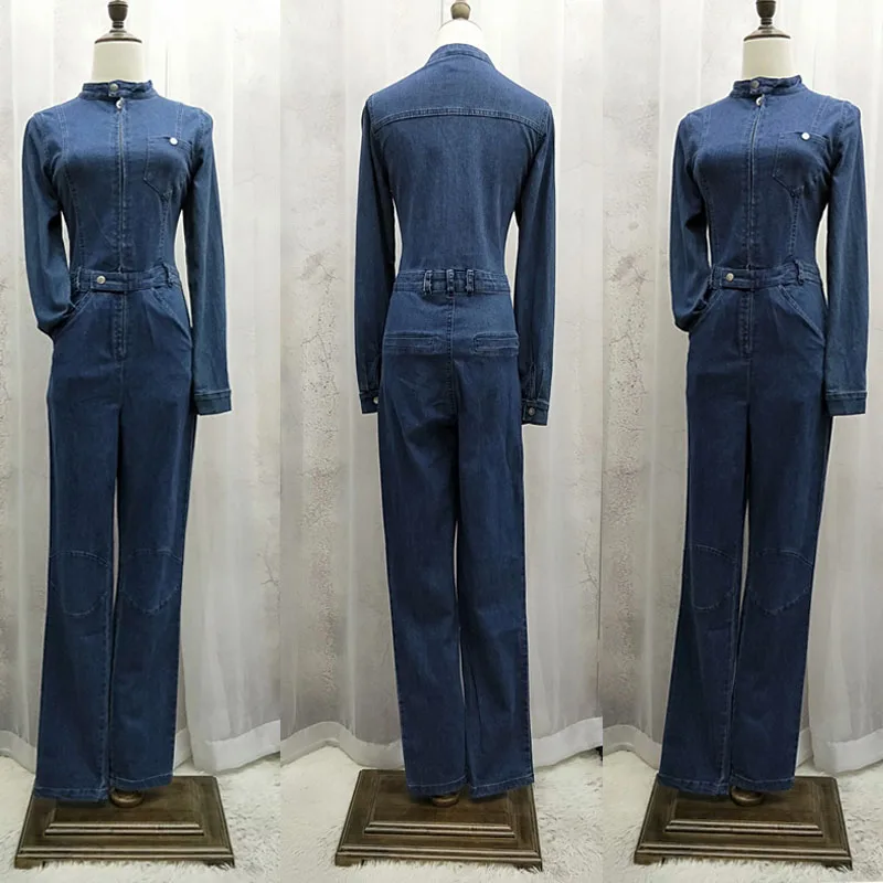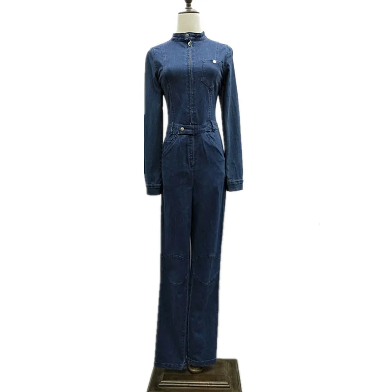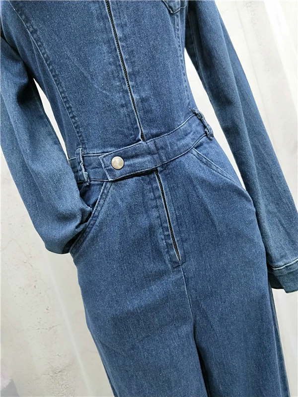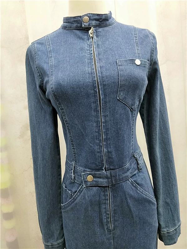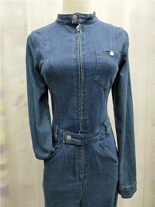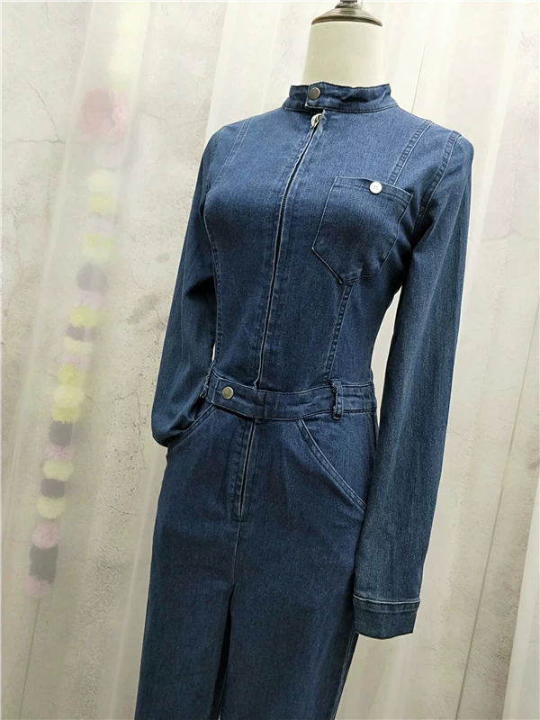 Женский джинсовый комбинезон на молнии, с длинным рукавом