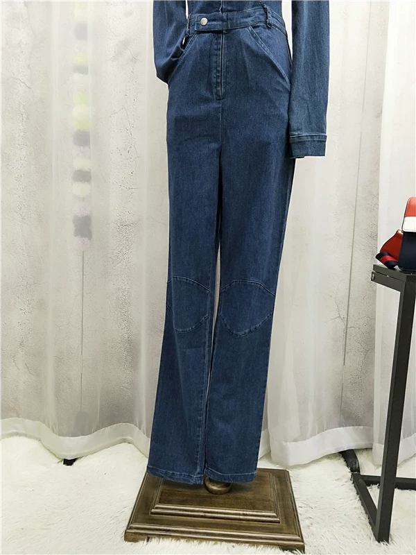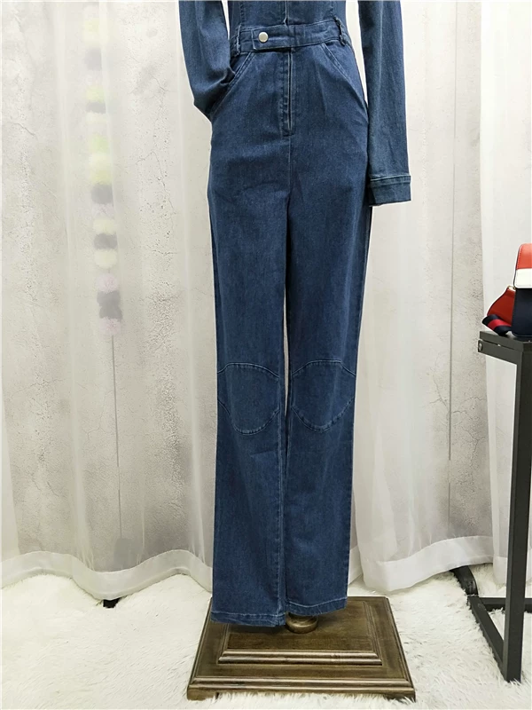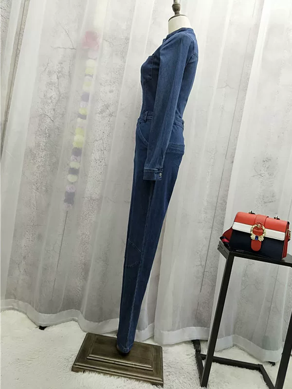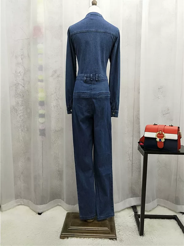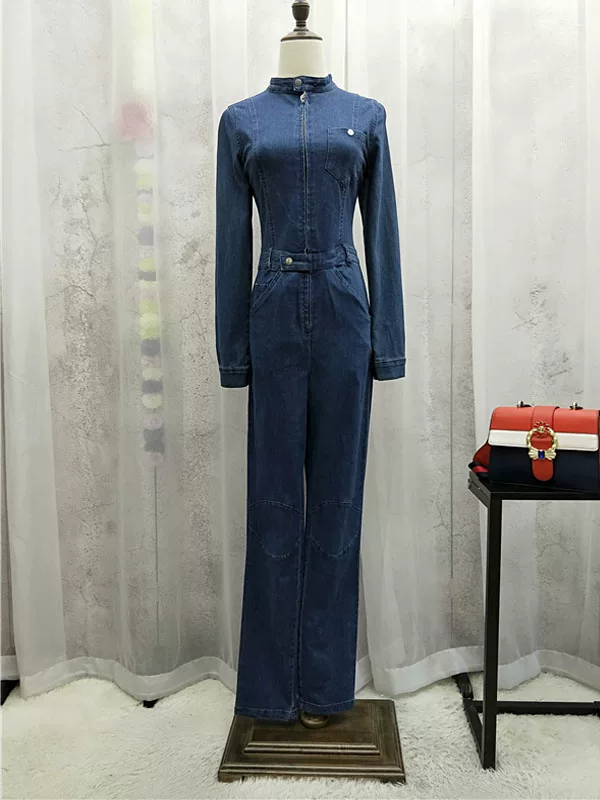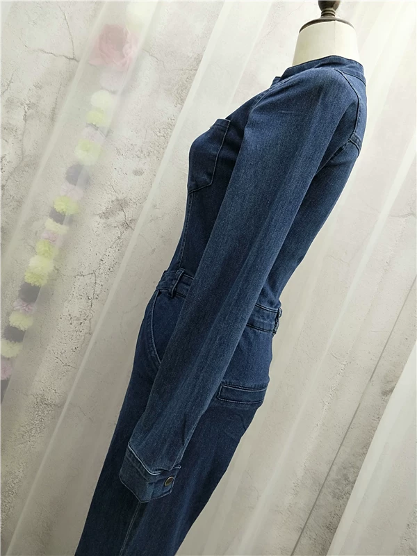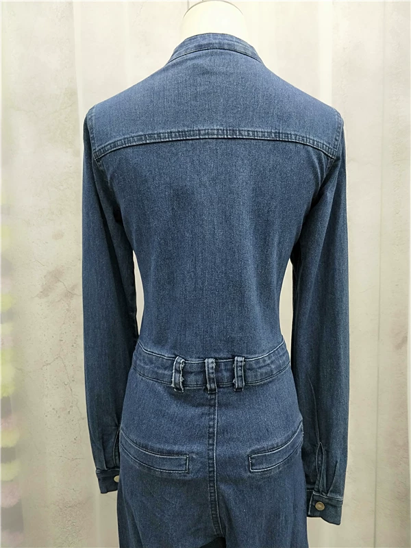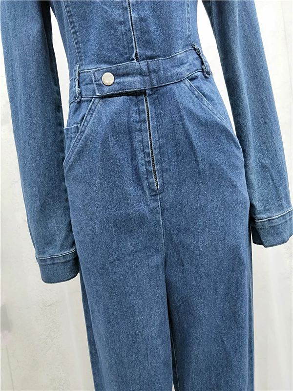 Женский джинсовый комбинезон на молнии, с длинным рукавом