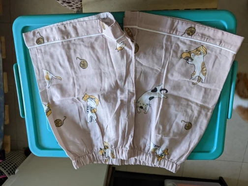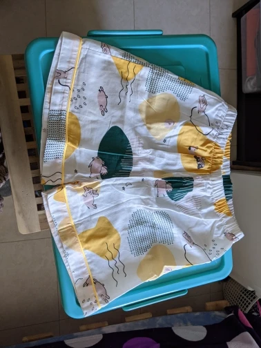 Дизайн ткани был таким же, как на фото, но везде были незаметные нитки, и шорты сразу же после стирки скручились в холодной воде. От размера XL до S.