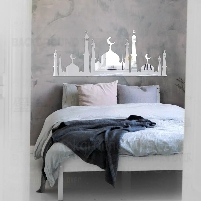 Зеркальные настенные Стикеры, наклейка для мечети, украшение комнаты, декор для спальни, декоративный Рамадан, кареем, исламский, арабский муслиновый мурак R220