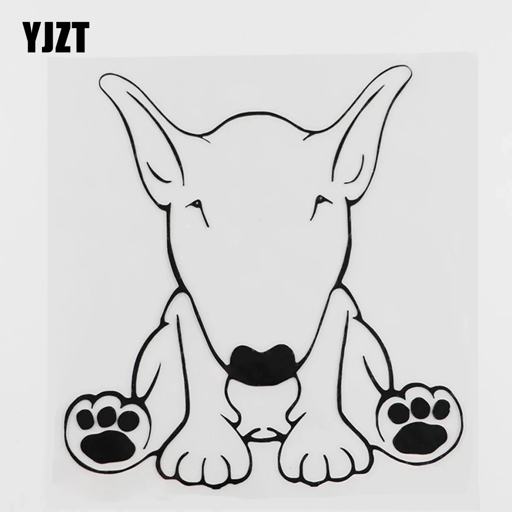 YJZT 13,2 см x 14,2 см, автомобильная наклейка, бультерьер, Виниловая наклейка с принтом собаки, водонепроницаемая, чернаясеребристая, 8A-0009