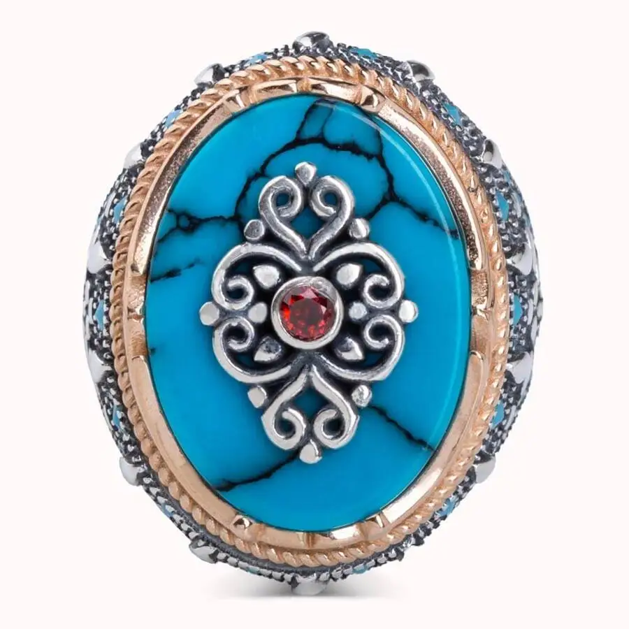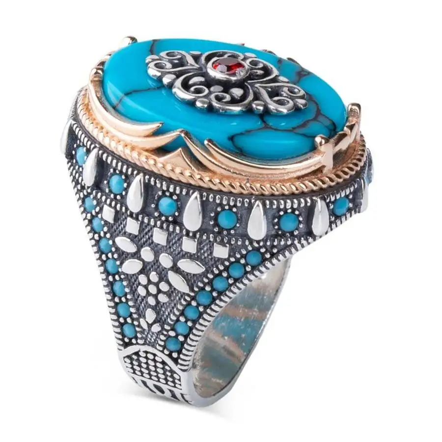 Женское серебряное кольцо с бирюзой и красным цирконом, мужское кольцо с мечом, фигурками, овальное серебряное кольцо с цирконием и бирюзовым камнем