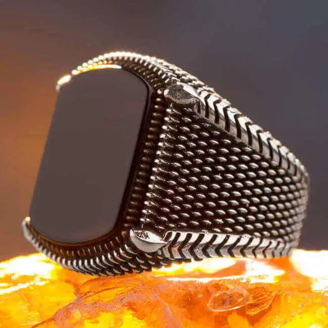 Кольцо несет в себе кусочек камня оникс.